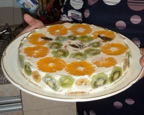 3 апельсина, 3 мандарина, 150 г. ананасов, 150 г. (1 небольшой) бананов.