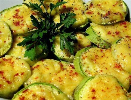 Кабачок очистить. Натереть на тёрке. Лишнюю жидкость отжать. Дoбавить яйцo, муку, соль, перец, специи. Всё смешать и ровным слоем распределить по дну формы для запекания. У меня прямоугольная небольшая, но это не принципиально, подойдёт любая