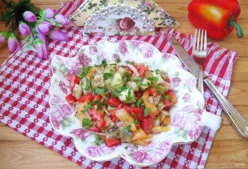 Выложите все в глубокую мисочку. Добавьте соль, сахар, уксус, масло и специи. Аккуратно перемешайте.