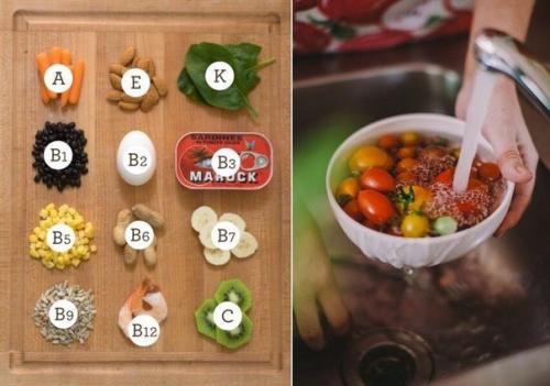 В 2 - отруби пшеницы, соевые бобы, капуста брокколи, печень, яичный желток, сыр.
