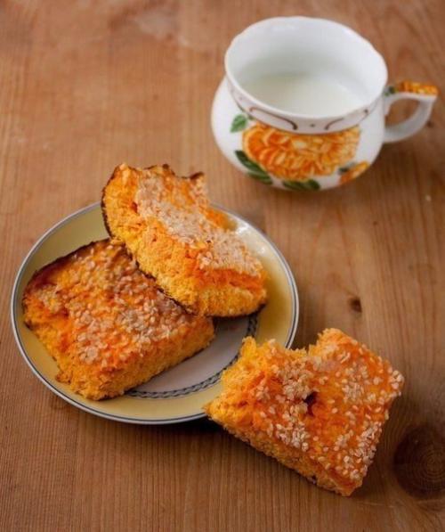 В творог вмешать морковку, потом добавить белки и аккуратно перемешать.
